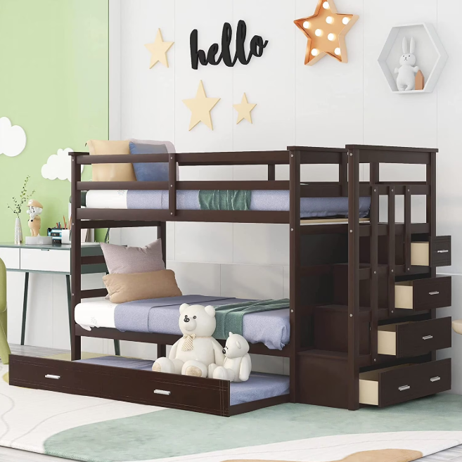 DreamBuck Solid Wood Bunk Bed, Hardwood Twin over Twin Bunk Bed with Trundle, Bunk Beds Twin over Twin with Stairs, Bunk Bed with 4 Storage Drawers, Twin Bunk Beds for teens Adults
